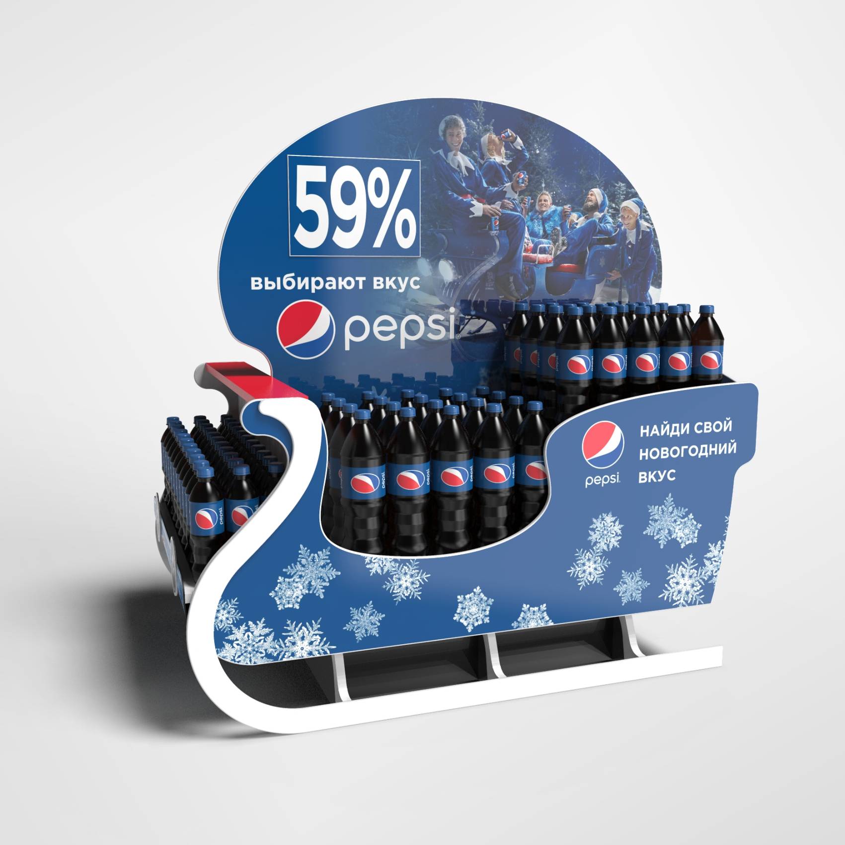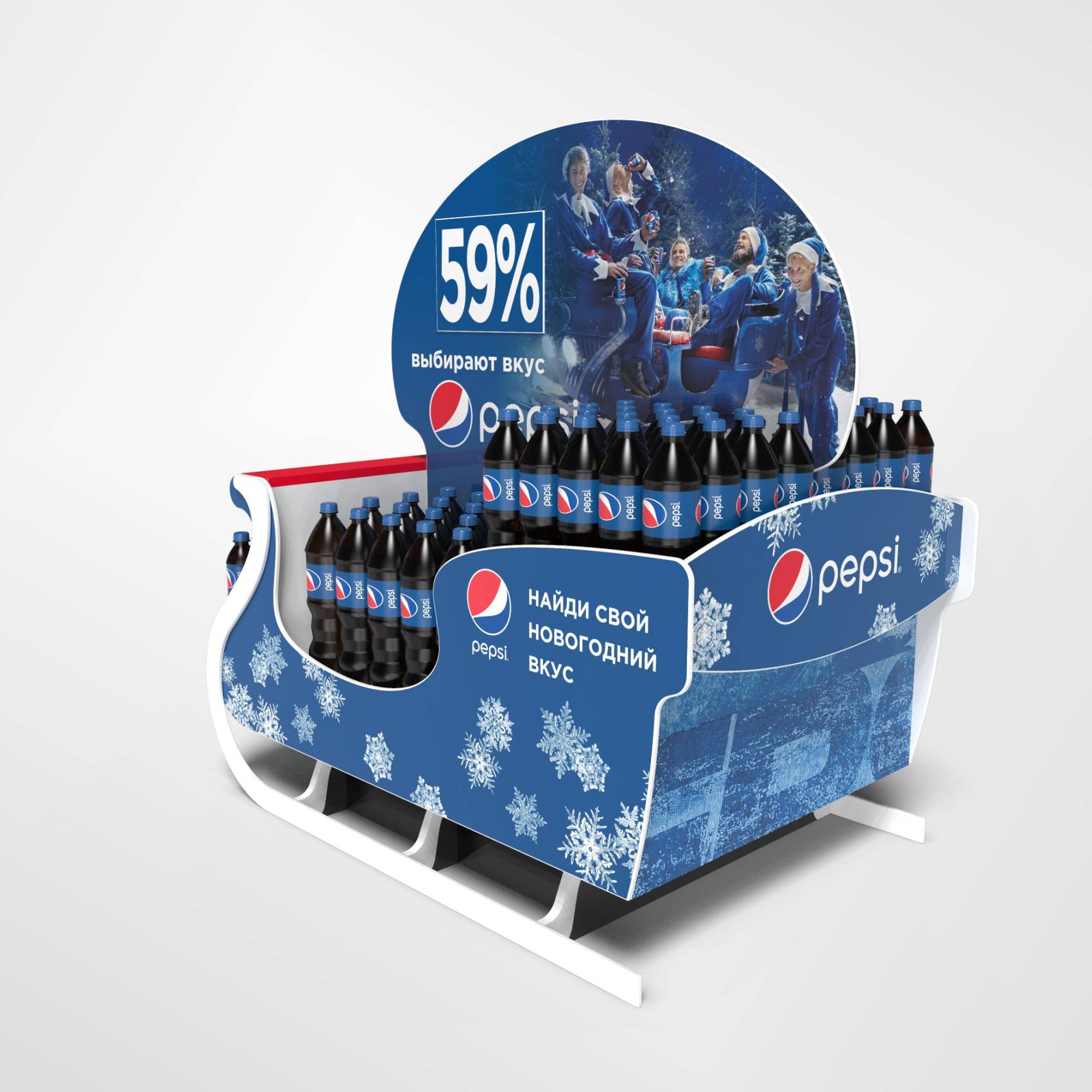 Для оформления сезонного или акционного места продаж можно применить более бюджетный материал. Сотовый картон выдерживает большую нагрузку, экологичный, имеет небольшой вес. УФ печать наносится прямо на картон.