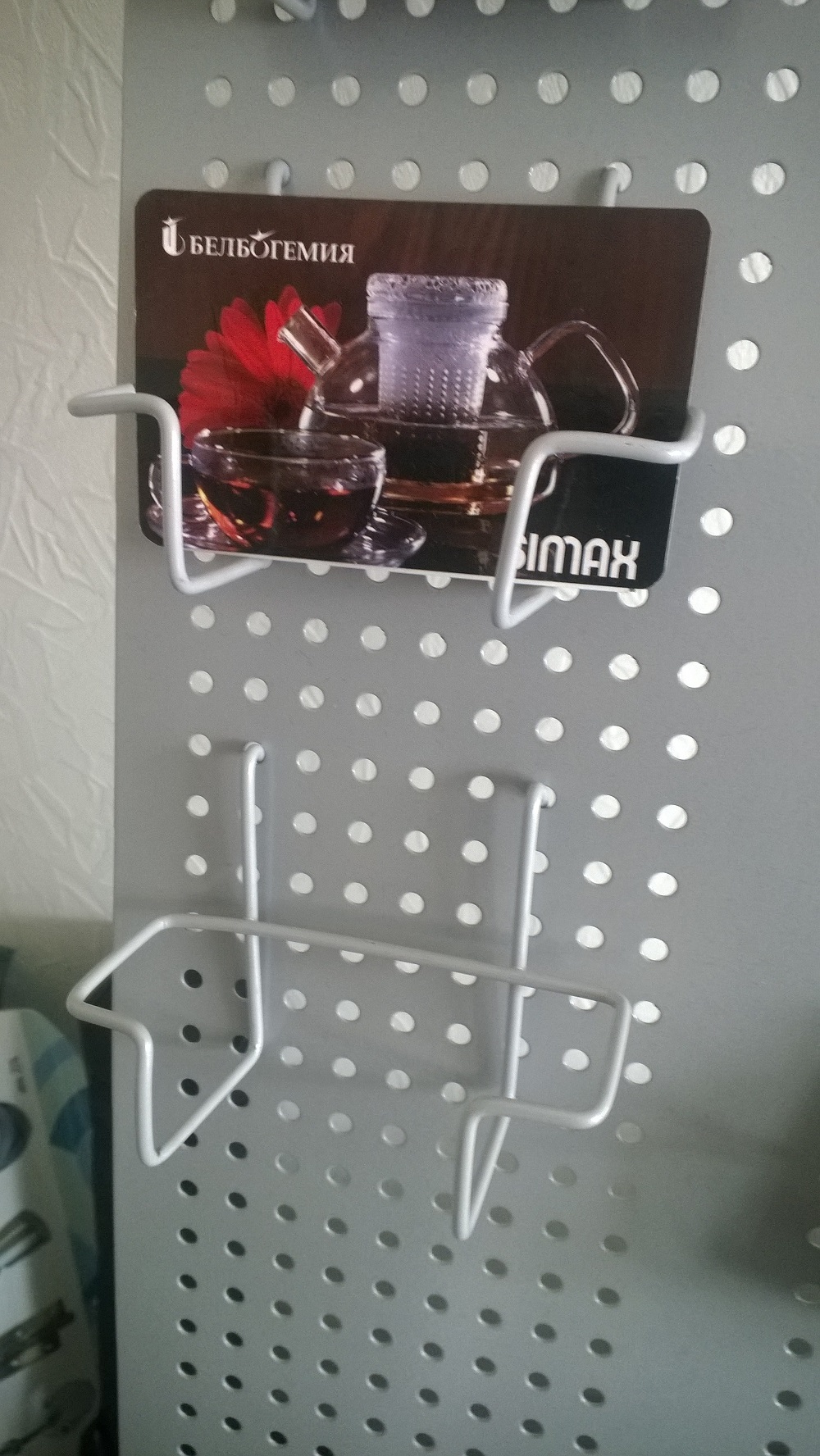Применение: крепится на сетку, сетчатый модуль, сетчатый стенд и перфорацию, с помощью специальных крючков предназначен для представления печатной продукции формата А3,А4,А5,А6, под визитки.