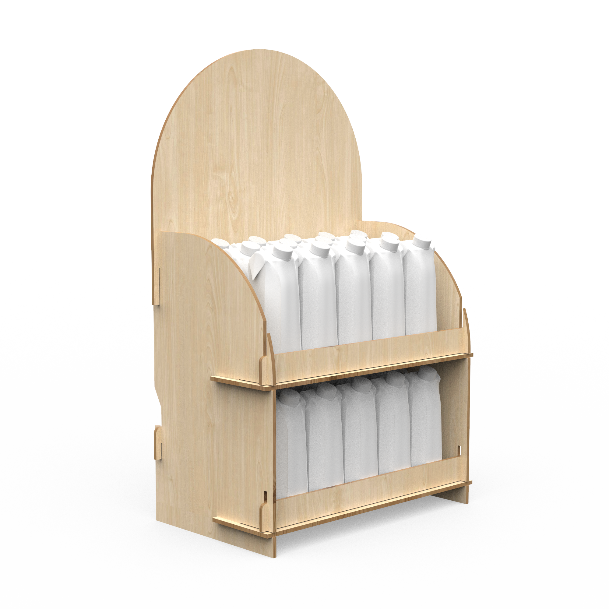 Подставка из фанеры для выкладки товаров удачно совмещает в себе прочность и мобильность. Натуральный и легкий материал, из которых изготовлено это оборудование, делает его таким популярным. Подставки из фанеры просты в сборке и эксплуатации, функциональны и приятны на вид, поэтому подходят торговым точкам с различными специализациями. На вместительных полках можно разместить большое количество мелкой продукции.